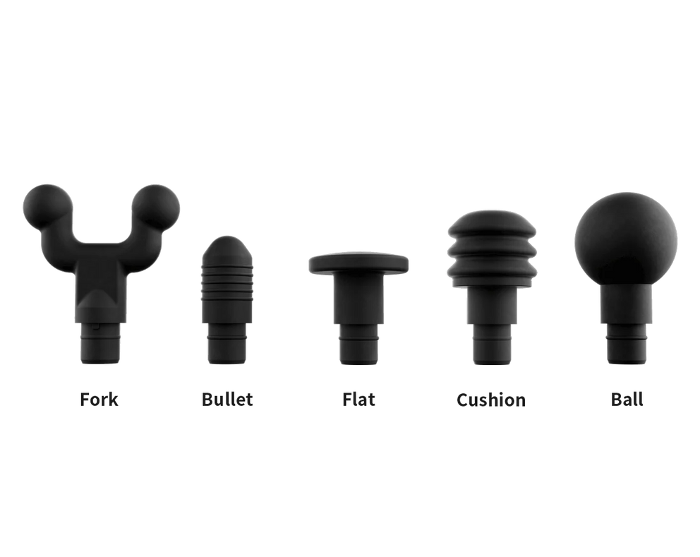 Hypervoltのアタッチメントは5種類入っており、身体の気になる部位に適切にフィットします。このアタッチメントはHypervoltシリーズすべてに利用できます。